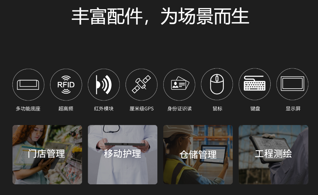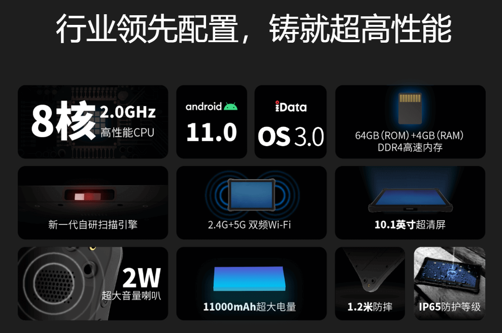 iData P28工業(yè)平板5g手持機(jī)特性超清大屏,一覽無(wú)遺10.1英寸超清大屏,分辨率1920*1200,圖表數(shù)據(jù)一覽無(wú)遺,多任務(wù)同屏操作無(wú)壓力??祵幋笮尚?代,抗摔耐刮擦。超薄,超方便厚度僅14.9mm,超薄機(jī)身,定向掃描優(yōu)化輕松應(yīng)對(duì)DPM碼識(shí)讀新一代自研掃描引擎,支持一維/二維碼識(shí)讀,輕松識(shí)讀各類(lèi)DPM碼。工業(yè)級(jí)防護(hù),輕