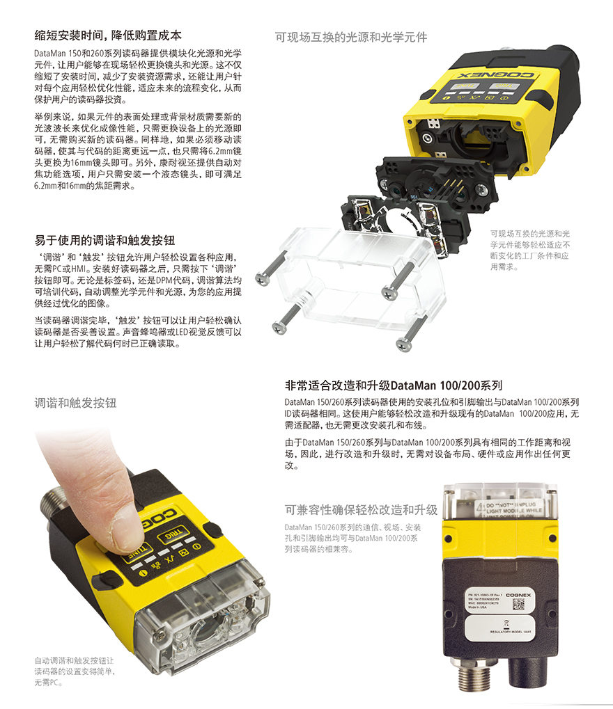 對于一維線性條碼、高密度的印刷二維matrix碼和直接部件標識代碼,Dataman 150/260系列基于圖像的固定式讀碼器均能夠推廣好的高性能、靈活性和易用性。