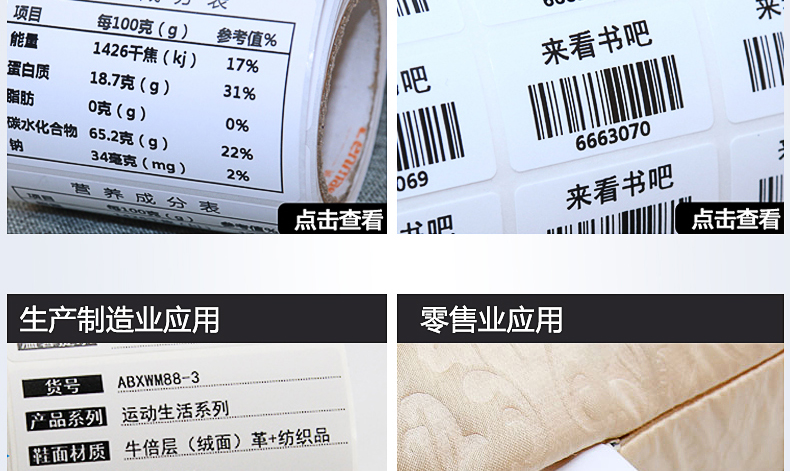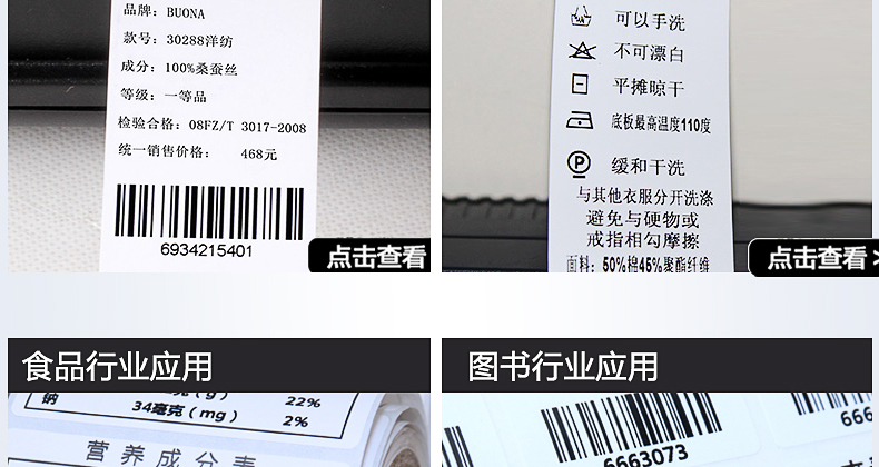 應(yīng)用:用于各種電器銘牌打印,適用于精細條碼和文字打印。
