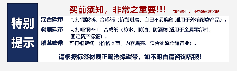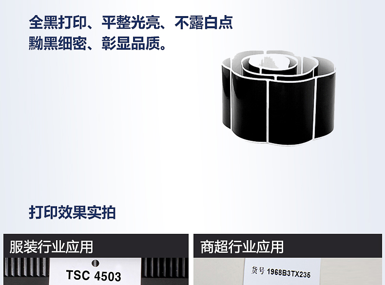 特性:可承受101℃下粗糙的磨擦,抗溶劑性強(乙醇、煤油、機油),耐刮性特強,打印精細度高 。