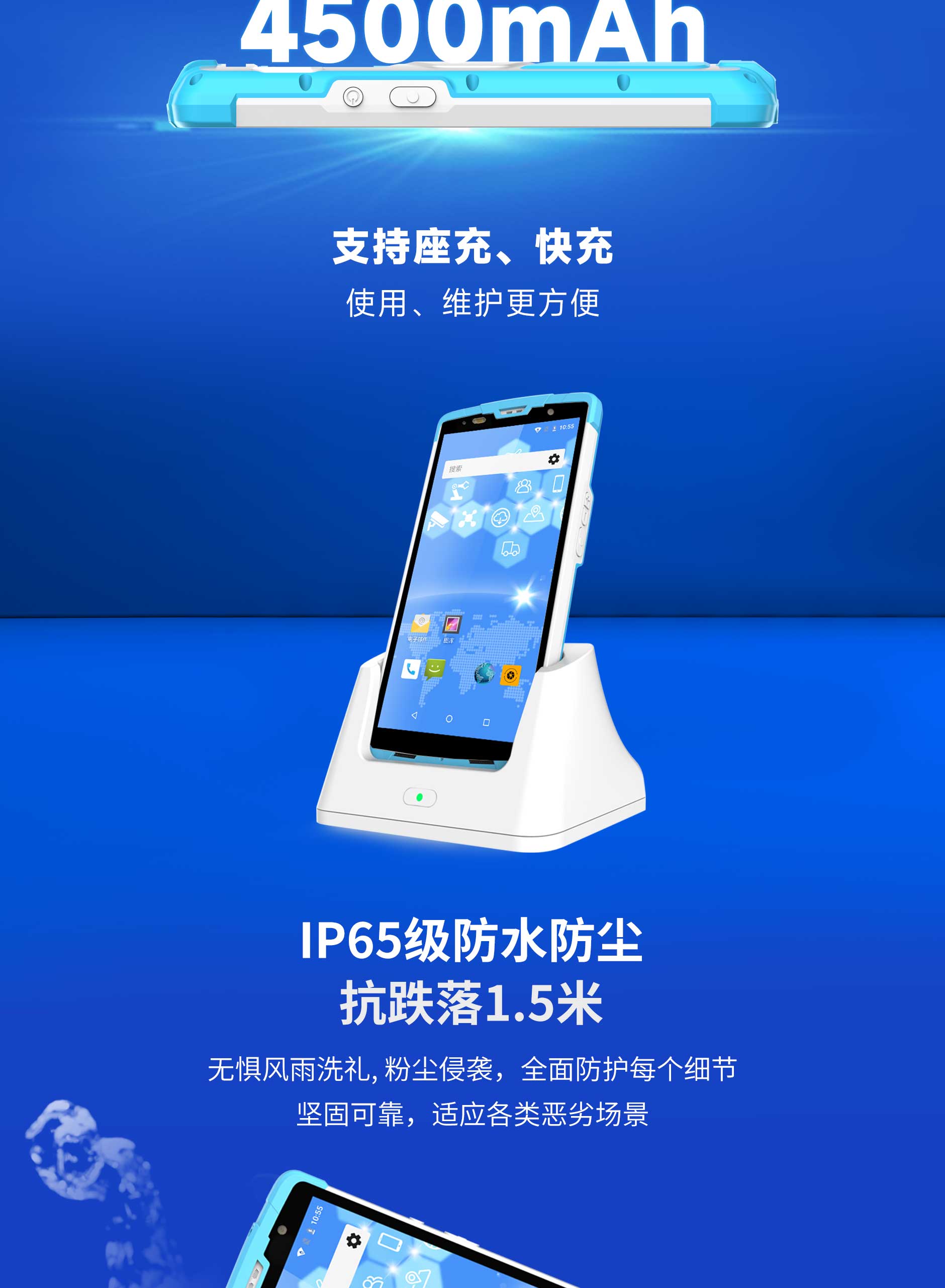 | 防護(hù) | IP65 防水防塵 1.5m抗跌落 |